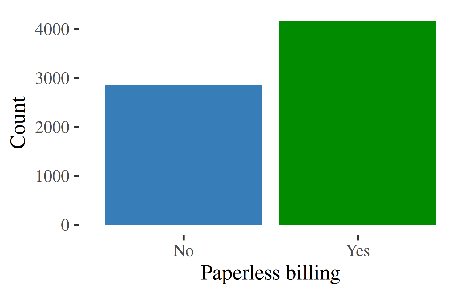 The finding that PaperlessBilling is a significant covariate in churn is not surprising. It suggests a correlation between a preference for paperless billing and a customer segment that may be more tech-savvy and responsive to new product offerings. This group might be more prone to churning for a new contract that includes the latest devices and gadgets. Given that the majority of the customer base falls into this category, this represents a major business risk. The company should investigate the underlying drivers of churn within this segment to develop targeted retention strategies.
